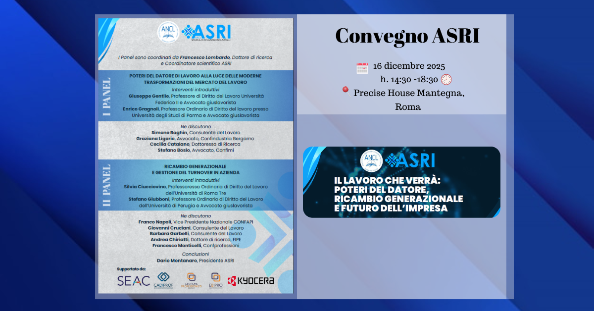 Estratto dalla rivista Il Consulente 1081 ed.3/2025 speciale ANCL – ASRI, “Il Contratto Collettivo Nazionale di Lavoro: implicazioni e risvolti di una scelta complessa” – Atti dai Convegni ANCL e ASRI, a cura del Presidente ASRI Dario Montanaro, reperibile nella sezione: Convegno di Brindisi “Il contratto collettivo applicato in azienda: profili ispettivi e di legalità”