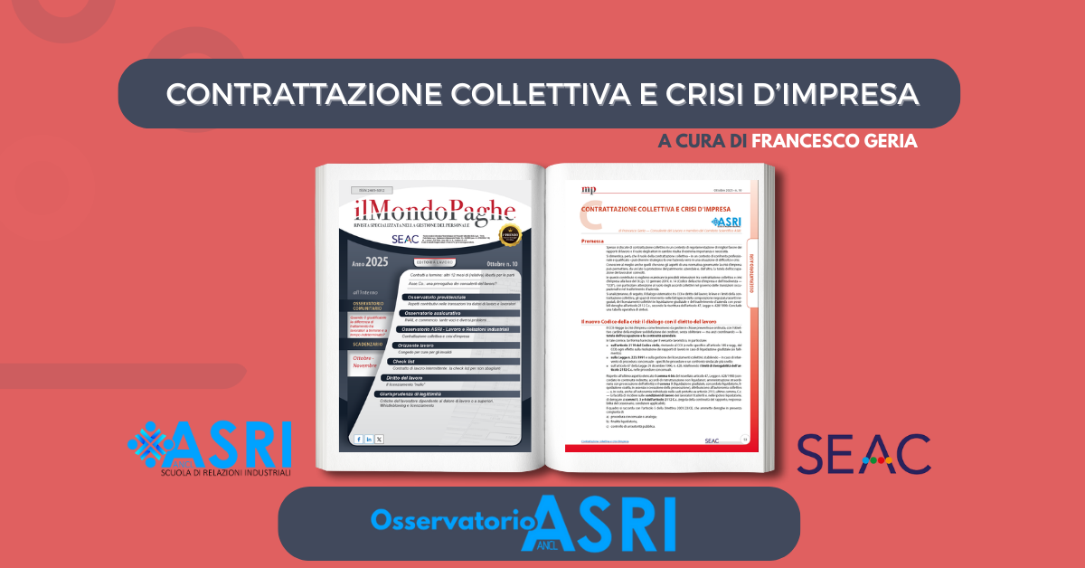 Dalla collaborazione tra ASRI e SEAC nasce la nuova rubrica “Osservatorio ASRI: Lavoro e Relazioni Industriali”.